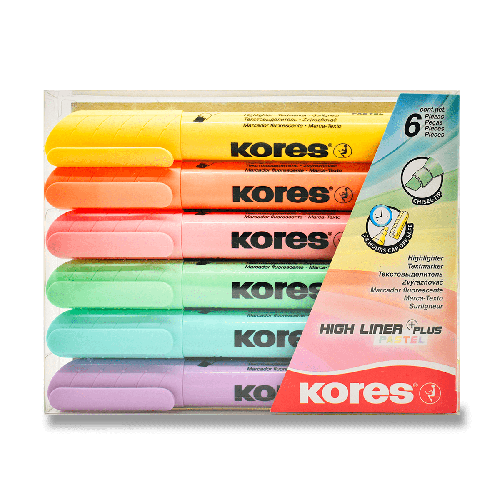 Zvýrazňovač Kores High Liner Pastel - sada 6 barev
