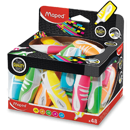 víčko a tělo v barvě inkoustu, * 5 fluorescenčních barev, * inkoust na vodní bázi, * odolný proti vysychání (bez víčka vydrží až 4 h), * odolný proti vyblednutí, * na všechny druhy papíru, * seříznutý hrot, šíře stopy 1 nebo 5