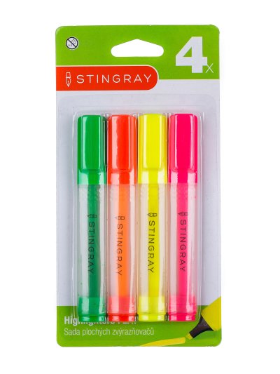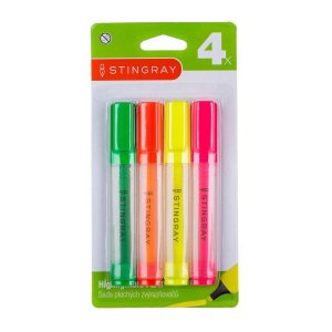 Sada zvýrazňovačů se zkoseným hrotem. Jsou určeny pro zvýraznění textu na dokumentech. Zvýrazňovače jsou vhodné k použití ve škole i v kanceláři.
