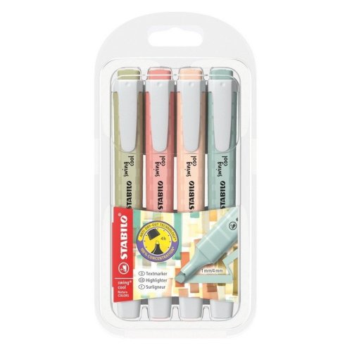 Kromě neonových a pastelových barev je zvýrazňovač STABILO swing cool dostupný také v jemných a tlumených barvách inspirovaných přírodou. STABILO swing cool NatureCOLORS nabízí estetické akcenty a dodává textům jemnou strukturu - v barvách jako siena, bahenní zelená a zemitá zelená. Díky zkosenému hrotu jsou dvě šířky stop - 1mm a 4mm - takže zvýrazňovač lze použít jak pro zvýraznění, tak pro podtržení.
