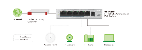 Výkonný gigabitový nespravovaný switch s podporou PoE+ napájení pro snadné připojení zařízení jako jsou IP kamery, přístupové body nebo VoIP telefony.