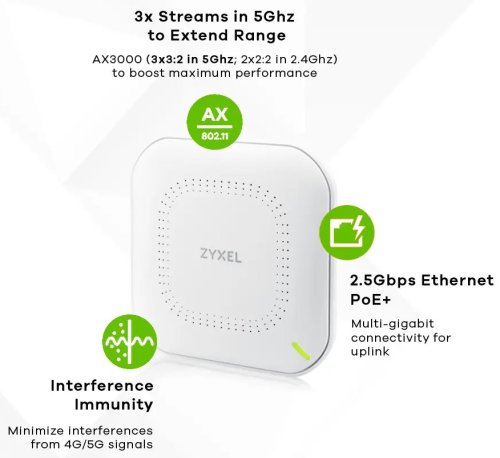 Přístupový bod ZyXEL NWA50AX Pro s 2,5gigabitovým ethernetovým uplink portem je primárně určen malým firmám a domácím kancelářím a poskytuje vysoce výkonnou Wi-Fi s rychlostí až 2975 Mbps.