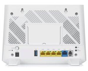 Porty: 4× RJ-45 LAN, 1× RJ-45 WAN, 1× RJ-11 DSL, 1× USB 2.0