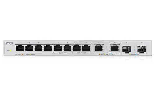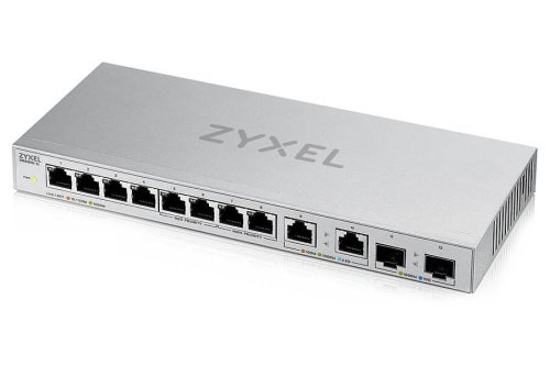 Zyxel XGS1010-12 je výkonný 12portový switch nabízející kombinaci 8 gigabitových portů, 2 Multi-Gig portů s podporou rychlostí 100 Mb/s, 1 Gb/s nebo 2,5 Gb/s a 2 SFP+ portů s podporou 10Gb/s konektivity. Díky této konfiguraci je ideálním řešením pro připojení moderních Wi-Fi 6 přístupových bodů, NAS serverů, herních konzolí a dalších zařízení vyžadujících vysokorychlostní připojení.